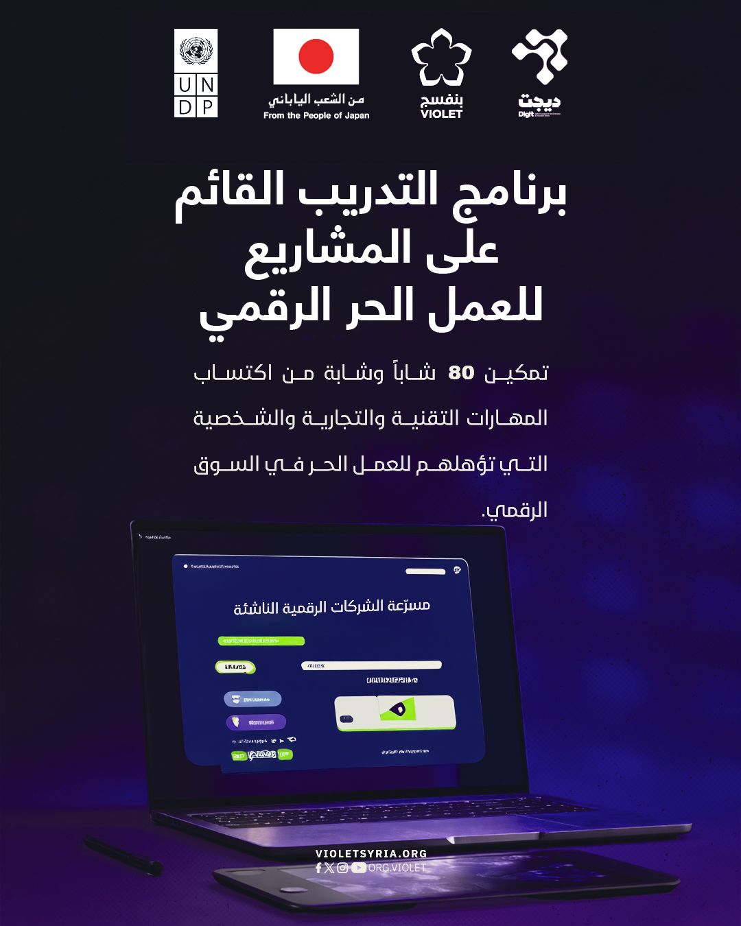 يُنفَّذ مشروع “تعزيز قدرات ريادة الأعمال الرقمية وتحسين الجاهزية للعمل الحر الرقمي” ضمن مركز الابتكار الرقمي (DIGIT) التابع لبرنامج الأمم المتحدة الإنمائي (UNDP) والمموّل من حكومة اليابان لعام 2024، بالشراكة مع منظمة بنفسج .